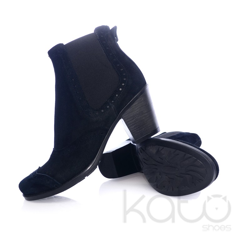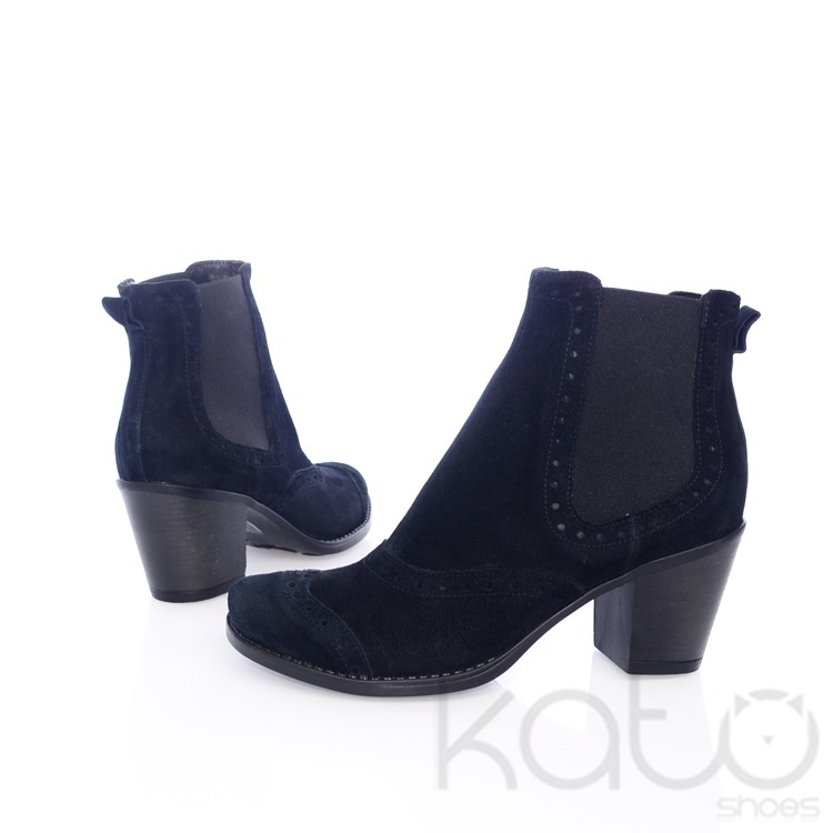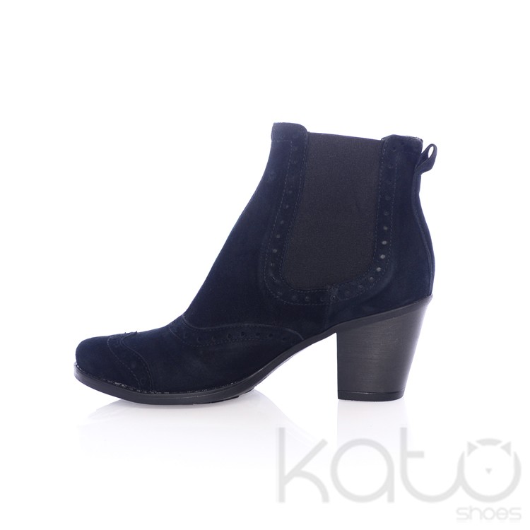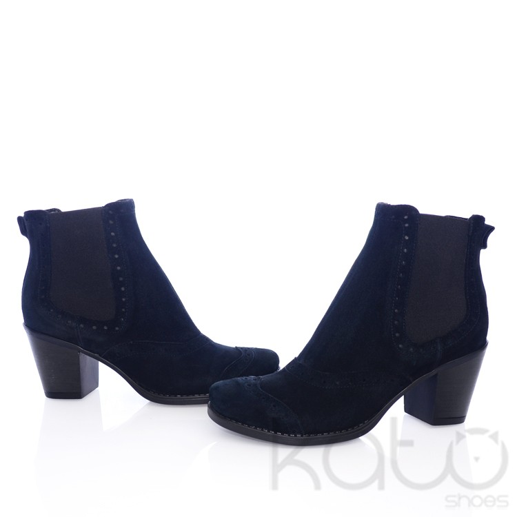 Botine Heart din piele velour culoare bleumarin inchis, toc de 6.5 cm. Elasticul negru pe glezna confera un plus de confort. .