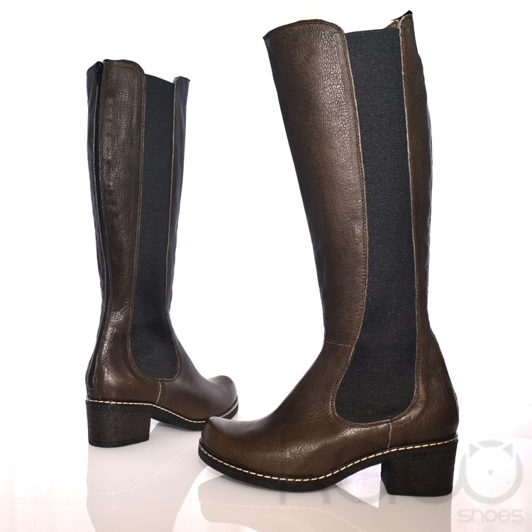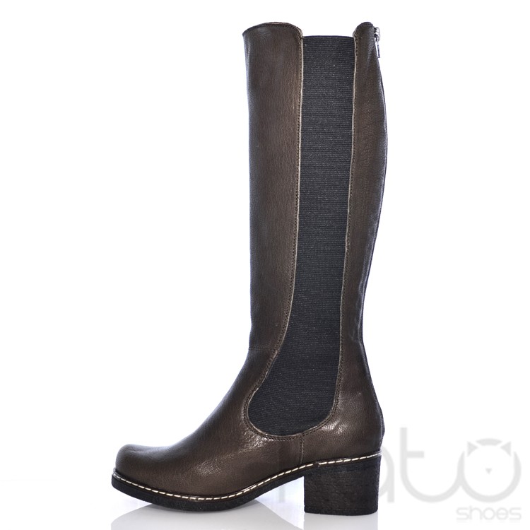 Cizme dama Heart, pana sub genunchi, din piele maro, cu toc gros maro. Elastic lat pe ambele parti. Talpa cu aderenta ridicata. Imblanite complet la interior.
