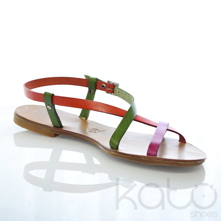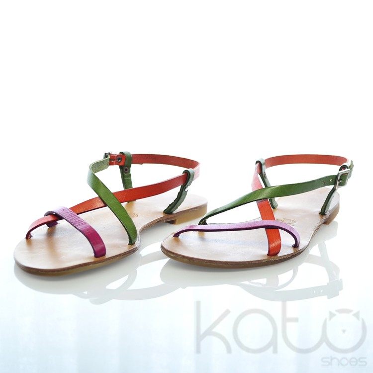 Sandale produse anual de Atelierele Harniciei din piele in 3 culori (verde, rosu, mov).