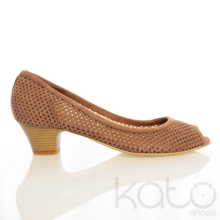 Pantofi dama din piele perforata cu decupaj frontal, foarte comod.