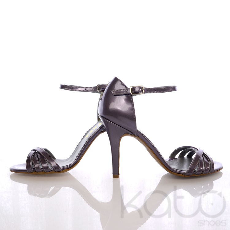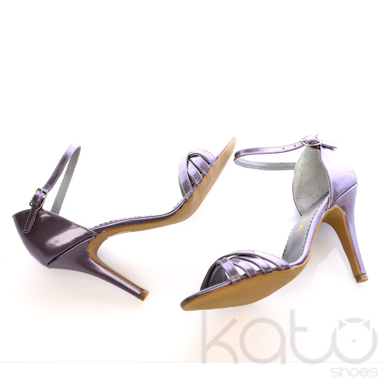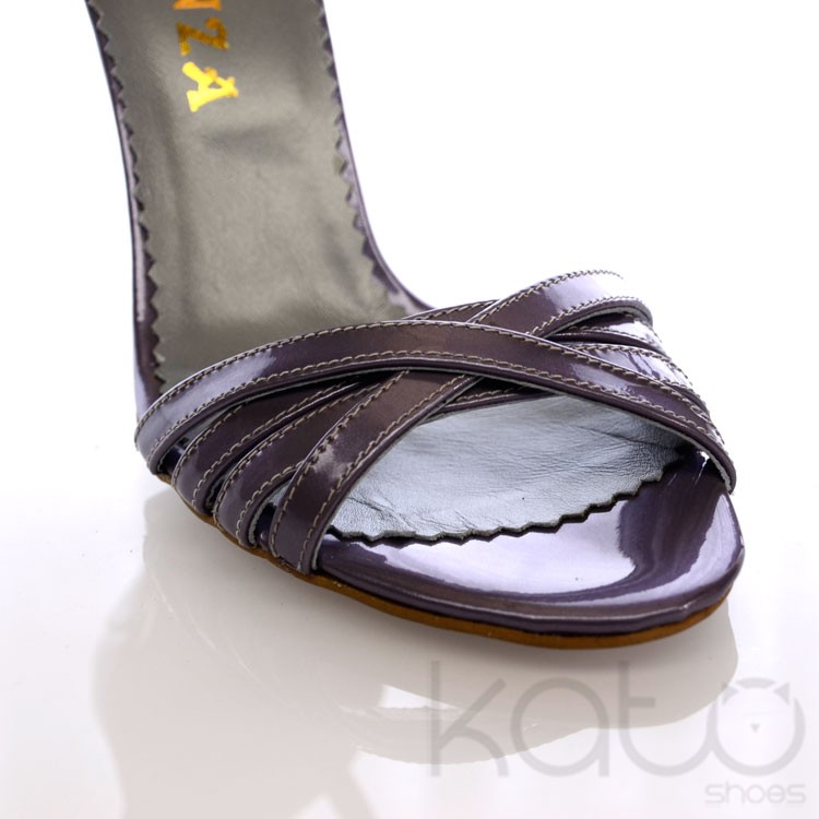 Sandale Essenza cu barete inguste peste degete si staif din piele mov sidefata metalizat cu toc stiletto .