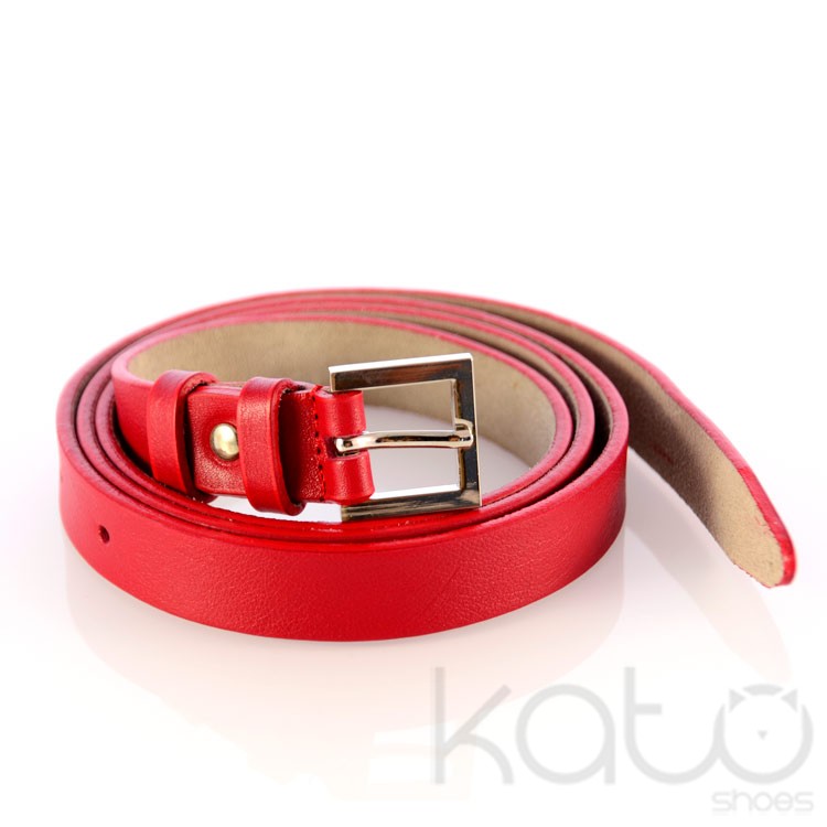 Curea din piele naturala pentru dama. Confectionat din piele extra, calitatea I, culoare rosu. Catarama metalica de calitate.