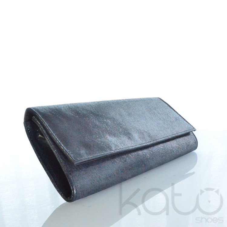 Plic clasic Essenza din piele de culoare argintiu inchis sidefat, captusit la interior.