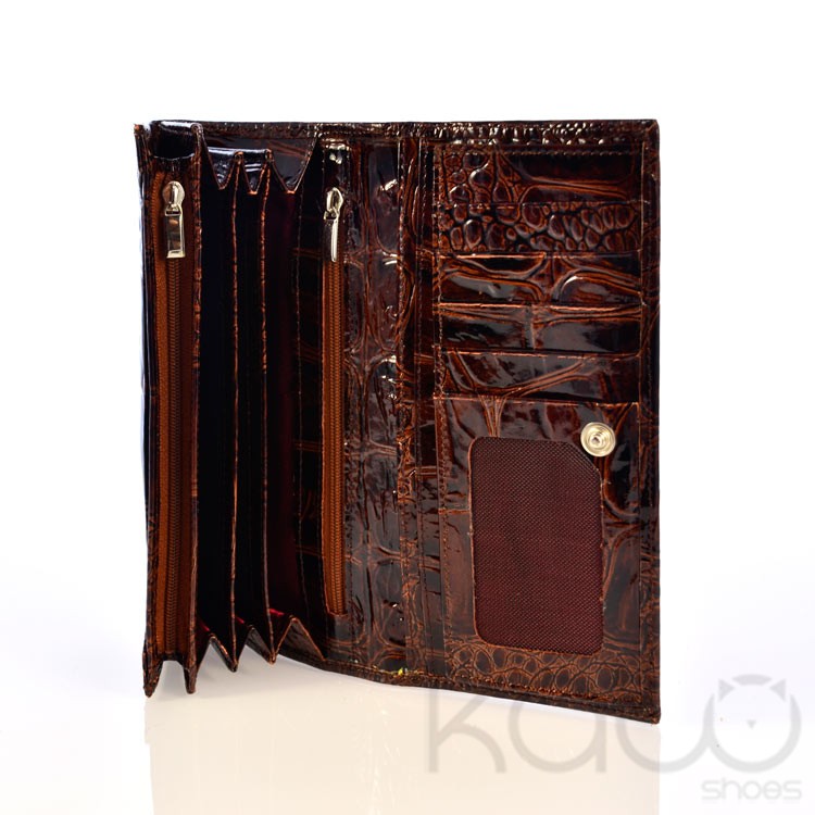 Portofel pentru dame de la Proartimar. Confectionat din piele extra-lux lacuita la exterior, calitate superioara, culoare maro lac.